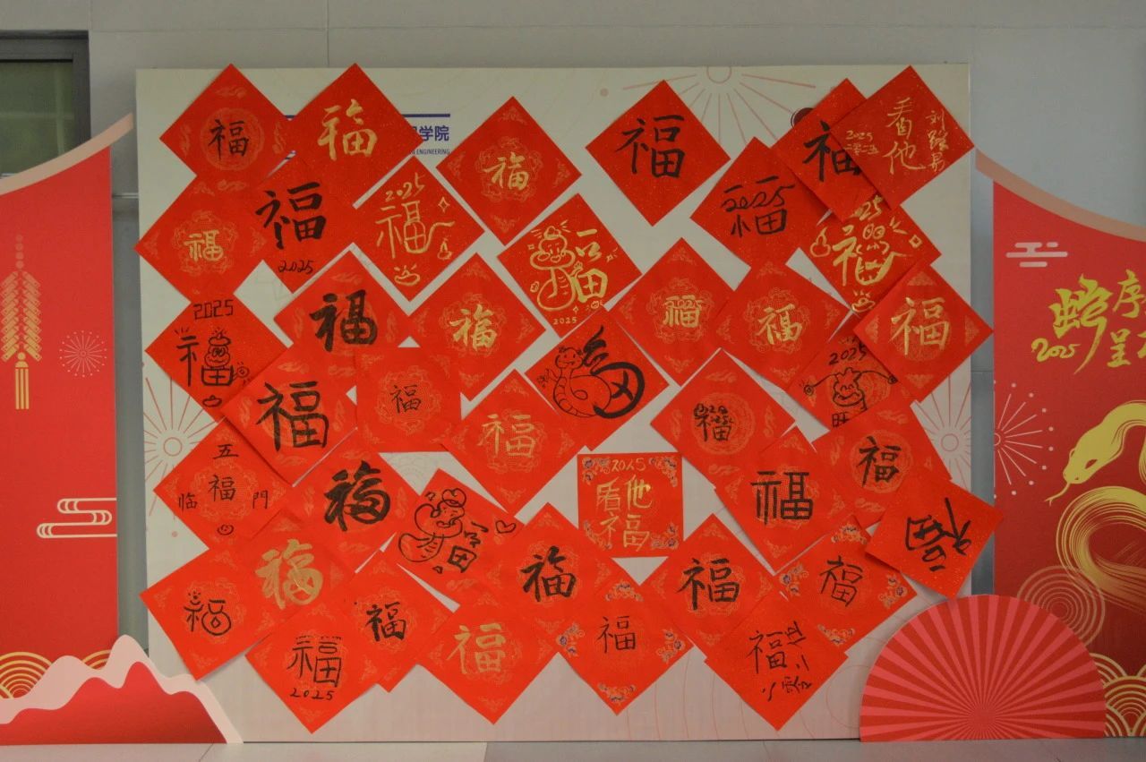 在书画区,大家纷纷挥毫泼墨,书写春联、福字,书法老师的笔走龙蛇间,洋溢着浓厚的节日气氛。参与的同学们也一展才艺,亲手写下自己对祖国的祝福和新春的期许。