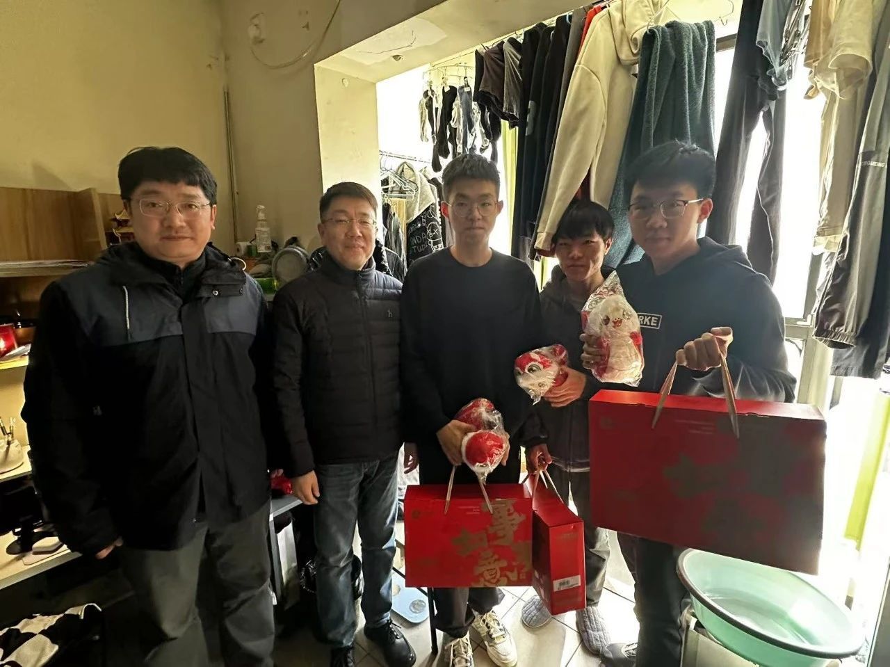 为更好地关心留校学子,公司党委书记王瀚漓、党委副书记徐伟铖和辅导员老师们深入员工社区,慰问留校过年的同学们,祝愿大家度过一个平安、愉快、充实的假期。