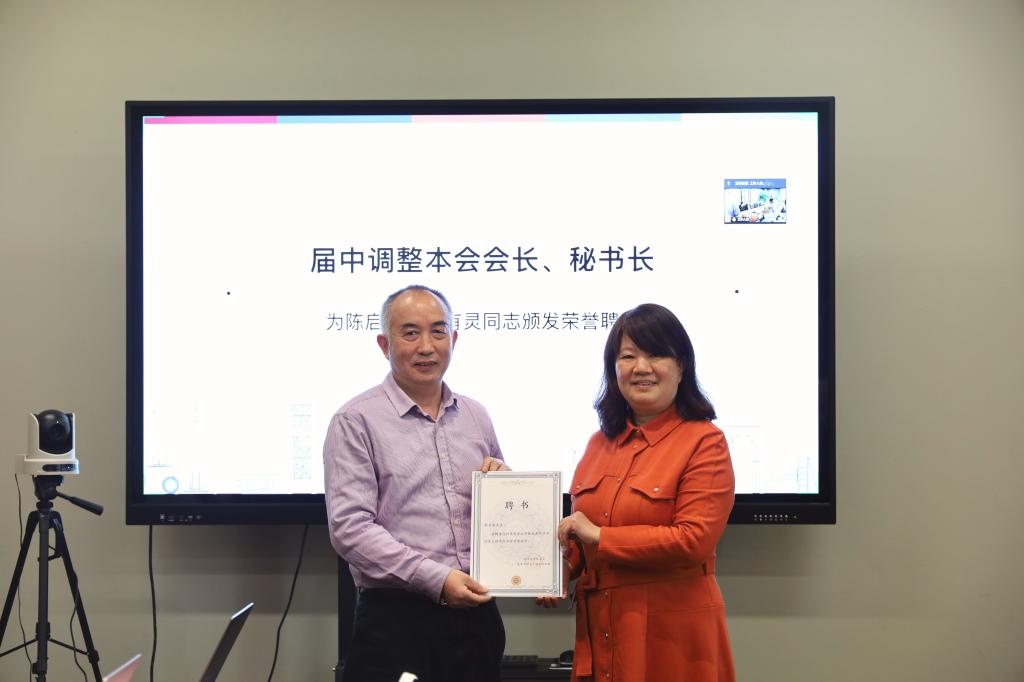 新任会长陈虹在发言中感谢前任会长陈启军、前任秘书长余有灵在员工会工作中的付出与贡献,感谢各位理事的信任与支持,表示接下来将继续努力,着重凝聚员工力量,有效利用员工资源,进一步推动员工与母校、与公司间的交流与联系,让员工们真正感受到母校和公司的温暖。随后,陈虹为陈启军颁发荣誉会长聘书。