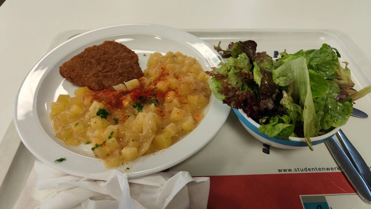 d.Erlangen的校区一共有两个食堂,可以现金也可以刷员工卡(员工卡有优惠)。只包含午餐,价格的话一般是3-6欧(看个人食量)。但与外面的餐馆相比还是便宜很多的,而且每天的菜单会进行变化,也可以在公司食堂官网查到。Erlangen城市里面餐馆的菜品也很丰富,也有亚洲超市和亚洲餐馆,因此完全不需要担心食物问题。