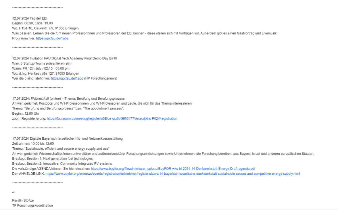 b.选课方面,FAU也和国内类似有专门的选课网站以及会在选课前由教务老师介绍如何选课。不过需要注意的是,德国大学并不存在考试周的说法。因此,期末考试的安排时间可能会在下一个学期开始前的任意时间。需要注意与自己回国时间不要相冲突。当然如果没有选上课,单纯去旁听也是没问题的。不过无法得到相关课程的资料(但是FAU的中国职工还是很多的,蹭一蹭也是没问题的)。除此之外,加入实验室之后也会有类似组会以及讲座的学习交流机会,在和导师沟通清楚之后,可以参加这些会议和讲座。公司也会不定时地发布一些讲座信息,供大家参加。