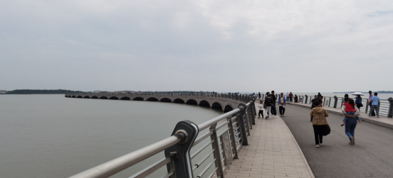 下午,游览淀山湖景点彩虹桥。彩虹桥位于淀山湖东线,2018年建造,长达1470米,贯通了整个淀山湖岸线,造型优雅,是长三角地区最长的拱桥。彩虹桥兼有防风定波作用,集水利、生态修复、亲水景观等功能于一体。