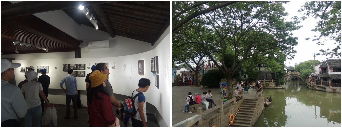 下午,大家游览枫泾古镇。 小巷鳞次栉比,小桥观赏流水,沿河穿行长廊,领略江南水乡的特有韵味。在枫泾古镇,大家还参观了金圃宅第、丁聪漫画陈列馆、张慈中书籍装帧艺术馆、人民公社旧址、程十发祖居等景点,了解古镇优秀的人文历史。