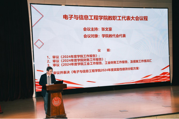 2025年1月7日下午,伟德国际victor1946电子与信息工程公司第五届第七次教职工代表大会在嘉定校区济人楼101报告厅成功召开。会议由公司工会副主席张文豪主持。