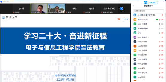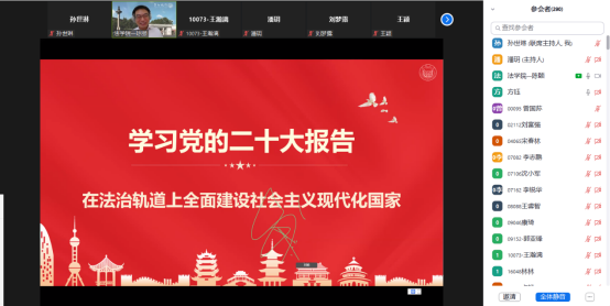 为深入贯彻学习党的二十大精神,领会习近平法治思想,加强公司治理体系与治理能力现代化建设,进一步推进依法治校示范公司创建工作,公司于2022年11月29日通过Zoom会议,开展“学习二十大 奋进新征程”法治专题教育培训,邀请伟德国际victor1946法公司教授、博士生导师、公司二十大精神宣讲团成员陈颐教授作法治建设专题报告。会议由党委副书记王瀚漓主持,全院全体教职工、本科生、研究生参加培训。