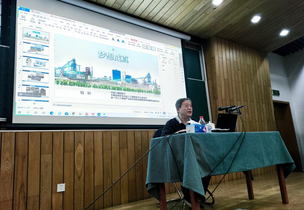 刘玠院士从自身成长和工作经历出发,分“自力更生 丰衣足食”“逼上梁山”“创新就在身边”“梦想成真”“挑战不可能”五部分以风趣幽默的语言讲述了自身从一位普通员工成长为工程院院士的奋斗史。刘院士在员工时期十分热爱学习,独立自主地完成许多高难度作业的同时不断获得成就感并加深对学习的热情。刘院士始终秉持理论结合实践的理念,参加工作以后,将所学知识应用于实际生产,主持了武钢一米七热轧机控制新系统研发,后以低成本自主完成了鞍钢中薄板坯连铸连轧生产线创新,以及1780冷轧线生产线国产化,为我国重大装备国产化做出巨大贡献。报告后,刘院士和同学们进行了热烈的交流。