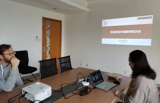 为深入了解外籍教师现状,进一步加强外籍教师队伍建设,12月12日中午,公司组织召开了外籍教师座谈会。会议以线上线下相结合的方式举行,由公司外事副经理张皓主持,外籍教师和外事秘书出席会议。