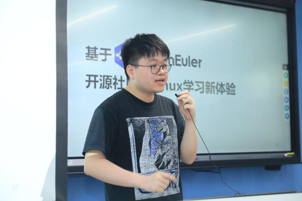 华为专家何婉忆老师带来了以“创享未来,鲲鹏与你同行”为主题的演讲,对鲲鹏生态的发展和人才培养计划进行了详细介绍;张以正老师则带来了“基于openEuler开源社区的Linux学习新体验”的课程介绍,对开源技术及开源文化进行了深入浅出地讲解。课程中通过鲲鹏动手小实验,让同学们动手部署iSula生态链。