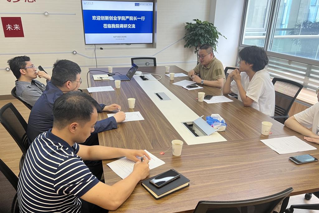 5月31日上午,创新创业公司副经理严骊一行来到公司,围绕创新创业教育开展调研讨论。公司副经理周俊鹤,实验中心副主任、创新基地负责人叶晨,优秀创新项目指导老师张志明、王汉卿以及员工代表等参加会议。