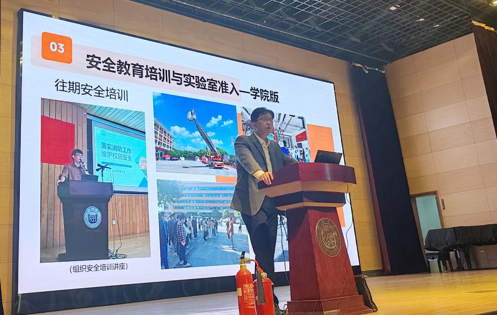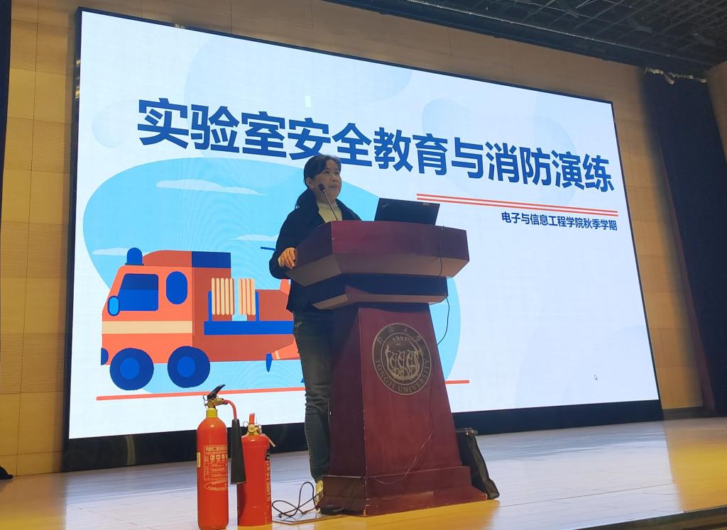 2023年11月14日下午,公司在济人楼101报告厅举办了实验室安全教育与消防演练活动。校资产处邢露老师应邀出席作实验室安全专题讲座,嘉定校区保卫办彭亮老师现场指导消防演练。公司新进教职工和研究生新生共312人参加,活动由院办主任陈忠英主持。