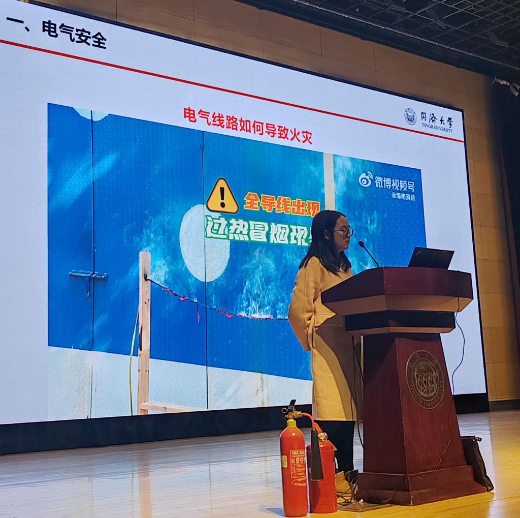 最后,嘉定校区保卫办的彭亮老师向师生讲述了近年来上海市发生的几起典型火灾案例,讲解了不同类型灭火器的使用方法及注意事项,并指导师生在户外模拟灭火屋切身体验模拟火场逃生,学习灭火知识,促进自身增强安全意识和逃生自救能力。