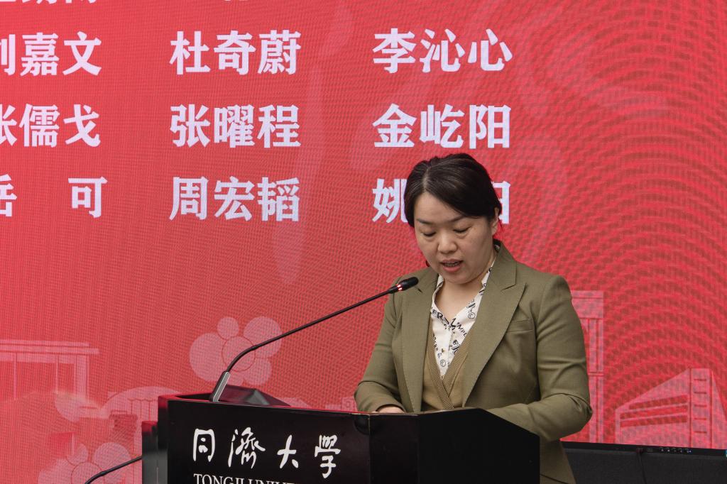 获奖员工代表2023级通信工程专业硕士研究生岳可发言。她首先代表所有获奖同学向吴启迪教授、各位员工致以崇高的敬意和衷心的感谢。她表示,荣获启迪奖学金是对员工积极投身于创新实践的认可,更是对员工矢志科学、追求真理的鞭策。她呼吁青年学子积极弘扬启迪奖学金的精神,在实践中应用并内化理论知识,在解决实际问题中提升创新能力,将自身发展与国家发展紧密结合,践行同济人的使命担当。