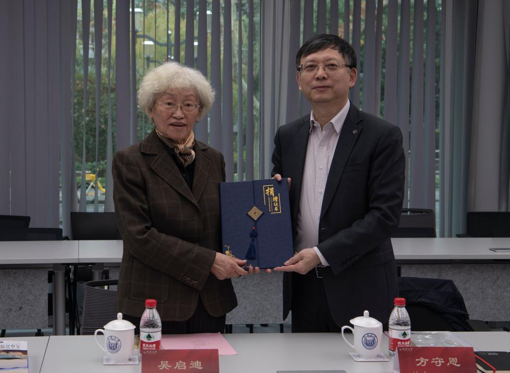 随后,吴启迪教授为到场的获奖学子颁发启迪奖学金证书并合影留念。