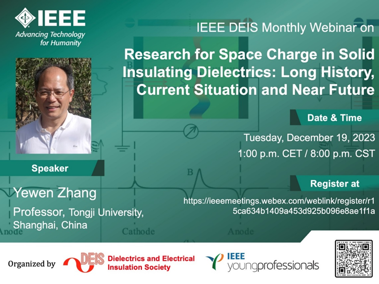 12月19日,应IEEE电介质与电气绝缘协会(DEIS)邀请,公司电气工程系张冶文教授作了主题为《Research for Space Charge in Solid Insulating Dielectrics: Long History, Current Situation and Near Future(固体电介质空间电荷研究:历史、现状及未来)》的全球直播网络报告。该网络报告会由IEEE电介质与电气绝缘协会和IEEE青年专家组联合主办,邀请全球电介质与电气绝缘领域顶级专家介绍前沿进展,分享科研经验。本次报告吸引了来自全球工业界和学术界的专家和教授报名和在线观看。