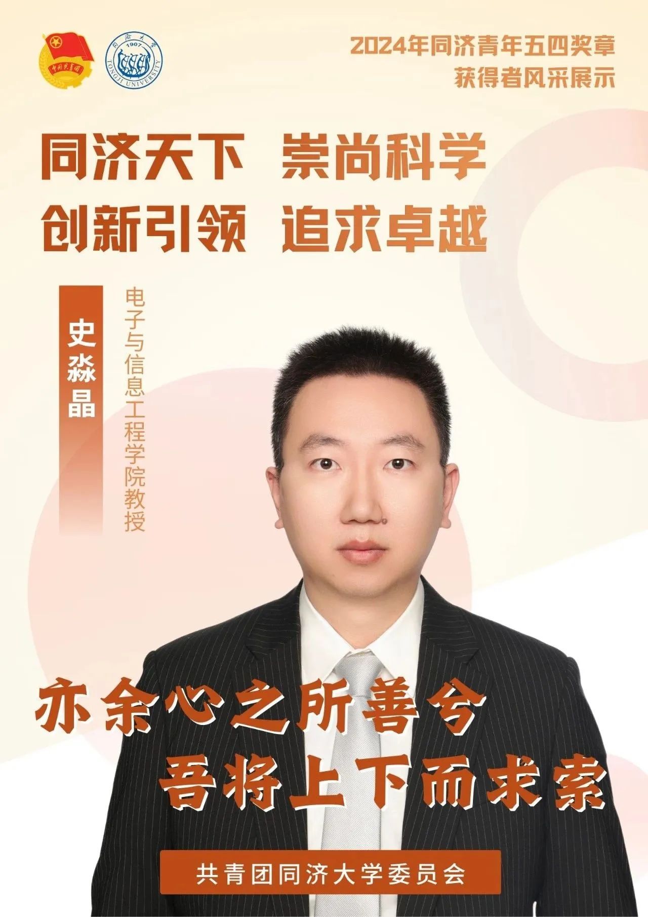 经校团委组织评审,伟德国际victor1946教师史淼晶获评2024年同济青年五四奖章(个人)。