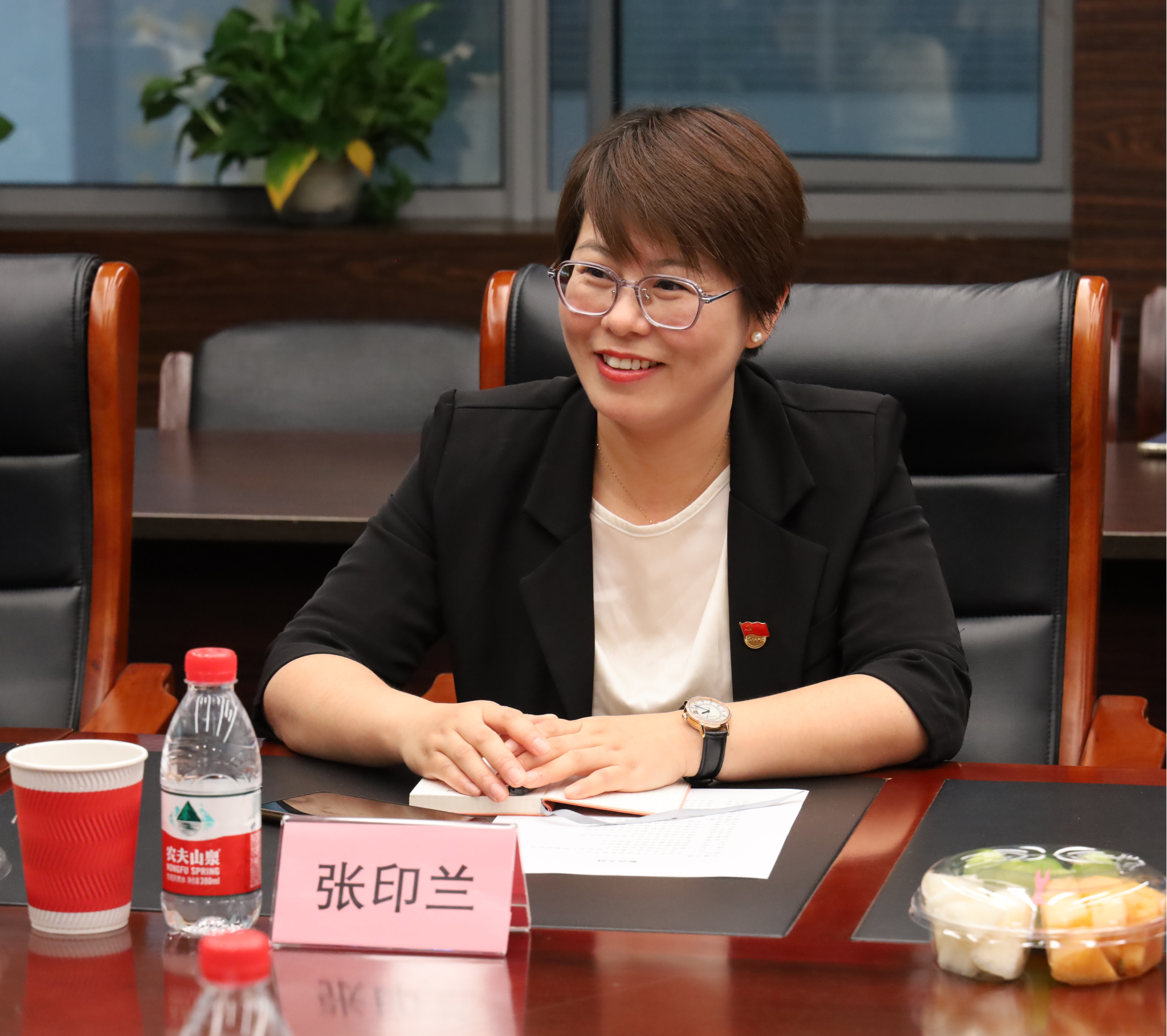 王瀚漓对上海大学张印兰组织员工作室一行的来访表示热烈欢迎。他指出,党的基层组织是确保党的路线方针政策和决策部署贯彻落实的基础,加强组织员队伍的交流合作,对于提升基层党建工作水平具有重要意义,希望双方以此次交流为契机,互学互鉴,共同为推动高校基层党建高质量创新发展贡献力量。