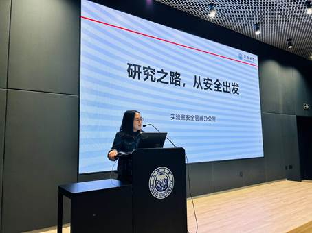 活动首先由校资产处实验室安全管理办的邢露老师作题为“研究之路,从安全出发”的讲座。她分别从常见的电气安全、重点的气瓶安全、特殊的危化品安全三方面,通过一系列的视频案例,深刻揭示了安全疏忽可能带来的严重后果。邢老师强调,在科研探索的道路上,安全始终是第一位的,在追求科学真理的同时,我们必须时刻保持警惕,确保所有的研究工作都在安全的前提下进行。