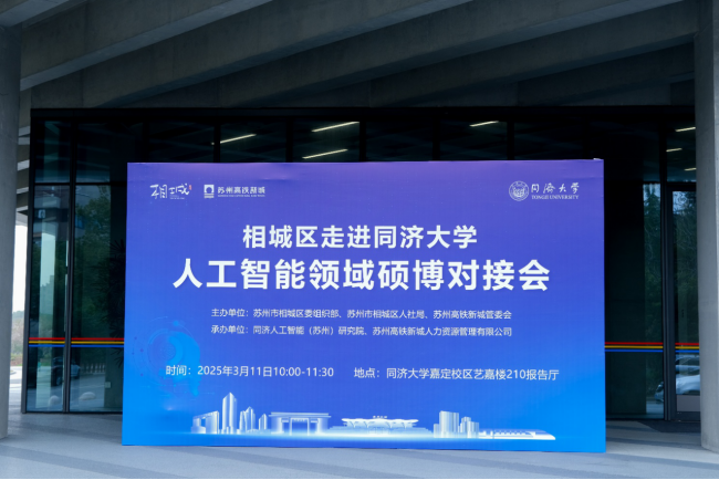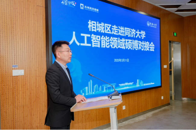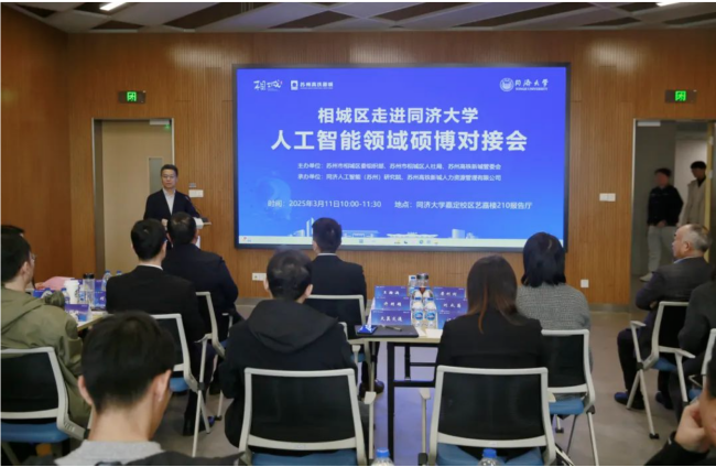 2025年3月11日上午,为深化伟德国际victor1946人工智能领域产教协同创新,助力苏州市“新一代人工智能”战略布局,由苏州市相城区委组织部、区人社局及苏州高铁新城联合主办,同济人工智能(苏州)研究院、苏州高铁新城人力资源管理有限公司共同承办的“相城区走进伟德国际victor1946人工智能领域硕博对接会”在伟德国际victor1946嘉定校区成功举行。苏州市相城区委常委、组织部部长、统战部部长詹利剑,伟德国际victor1946公司党委书记王瀚漓等领导出席活动并讲话。伟德国际victor1946经理陈虹,嘉定校区管委办主任周斌,伟德国际victor1946党委研工部副部长李睿,员工就业指导中心主任王凌凌,中国(上海)数字城市研究院执行经理陈启军,伟德国际victor1946控制科学与工程系主任刘成菊,以及苏州高铁新城、相城区委人才办、区人社局、区科技局分管领导也参与了本次活动。