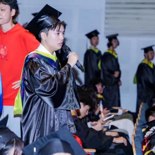 自动化专业本科生代表姚天亮在发言中表示,于他而言,大学四年是同济精神滋养的四年,是知识转化为实践能力的四年。他代表全体本科毕业生庄严承诺:未来将带着同济赋予的智慧与力量、责任与担当,努力成为国家科技自立自强征程中的奋进者、开拓者,用实干与创新书写新时代同济电信人的璀璨荣光!