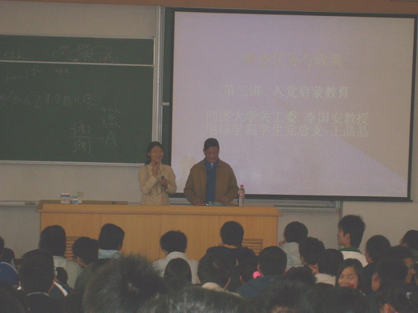 李国安老师退休前是公司文法公司教授,他今年虽已90高龄,但身体硬朗、精神矍铄、声音洪亮、思维敏捷。针对新生特点,李老师从三个方面进行了阐述:如何从思想上、生活上、学习上尽快适应老员工活;如何实现从“人性”到“党性”的提高;如何树立科学发展观。基于对哲学知识的了解,李老师在讲述中穿插了很多哲学的基本知识,如“什么是人”等基本命题,同学们不时爆发出热烈的掌声。