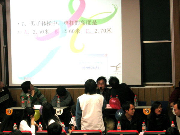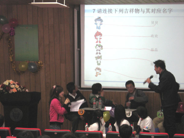 开幕式结束后,随即进行了一场精彩的“春聚嘉园,E启奥运”奥运知识竞赛。竞赛紧扣全民奥运的时代主题,意在让全体师生在知识竞赛中体验奥运精神;参赛队突出奥运五环的主题,将公司的五个系的同学组成五个队参加角逐。经过小组必答、时速冲击、风险加速、决战PK等四轮紧张激烈的比赛,最终,控制理论与控制工程系获得团体冠军、电子工程与技术系获得团体亚军。