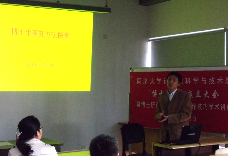 12月3日,计算机科学与技术系“博士之家”成立大会暨博士生科研方法探索学术讲座在嘉定校区举行。校研究生院研工部部长陆居怡,公司党委副书记向阳、董变林,计算机系副主任曾国荪、党总支副书记张砚秋、博士党支部书记卫志华等以及50名博士研究生出席了大会。