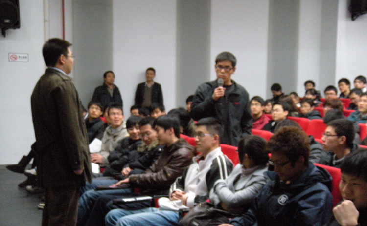 讲座中,赵烨先生围绕IT最新的主流技术和相关的行业背景主题侃侃而谈,详细为同学们介绍了IT主流职位的类别、技能需求、工作压力以及入行门槛等,独到地解析了软件工程师、系统管理员等重点职业的发展轨迹。另外,还就同学们最关心的就业问题进行了解答。讲座的后阶段,赵烨先生还请来一位计算机方向研二员工与同学们分享自己个人的成功经验。