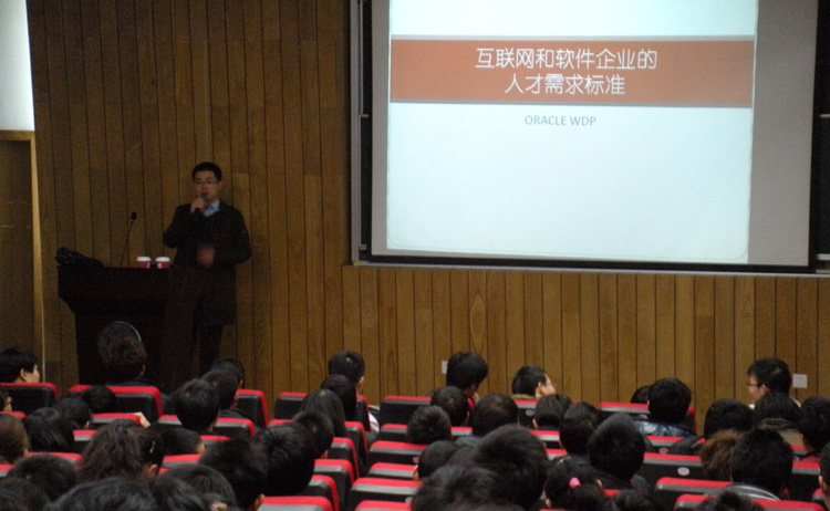 作为公司第七届“E海扬帆”老员工科技节之“励志 博学 讲坛版”的系列活动之一。3月22日晚,Oracle(甲骨文)中国有限公司高级技术顾问赵烨先生受公司邀请,在电信楼117报告厅做了一场题为“互联网和软件企业的人才需求标准”的讲座,200多名同学聆听了此次讲座。
