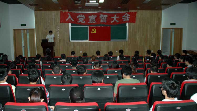 宣誓仪式在庄严的国际歌中开始,全体党员在领誓人的带领下,面向党旗,高举右臂,在党旗下庄严宣誓:“我志愿加入中国共产党,拥护党的纲领 …… 随时准备为党和人民牺牲一切,永不叛党。”铿锵的誓词在会议室中久久回响,显示了全体党员对党的无限忠诚和为党的事业奋斗终生的坚定信念。