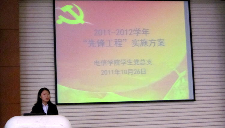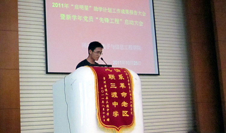 10月25日下午,电信公司2011年“启明星”助学计划总结会暨新学年党员“先锋工程”启动大会在嘉定校区行政南楼224报告厅召开。嘉定校区党工委副书记岳继光、校团委副书记陈一希,公司党委书记童学锋、副书记董变林,员工党总支副书记王晶晶、团委书记程莉及“启明星”支教团成员、公司200余名大二、大三的本科生党员和入党积极分子参加了大会。会议由董变林主持。