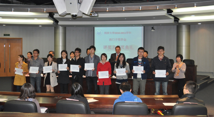 西门子奖学金评奖及颁奖仪式10月26日在嘉定校区顺利举行。西门子(中国)有限公司执行副总裁、西门子东北亚工业业务领域总裁吴和乐博士,伟德国际victor1946董琦副董事长,伟德国际victor1946对外联络办副理事长梁春江,机械公司沈斌教授,西门子(中国)有限公司工业业务领域组织发展部总经理张利博士,工业业务领域行业销售、系统集成商管理总经理张凡,获得2010-2011年度伟德国际victor1946西门子奖学金的20名优秀本科生和研究生出席了颁奖仪式。