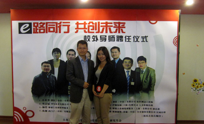 6月5日下午,第一批校外导师聘任仪式在嘉定校区同德楼隆重举行。公司党委副书记董变林代表公司,为第一批校外导师――摩根士丹利管理服务(上海)有限公司副总裁杨英杰先生、摩根士丹利管理服务(上海)有限公司执行董事杨浩先生、伊顿电源(上海)有限公司人力资源经理陈新力先生、西门子(中国)有限公司高级销售经理仇钢先生、华为技术有限公司招聘经理郑志猛先生、梅赛德斯―奔驰(中国)汽车销售有限公司区域经理涂宁南先生、微软(中国)有限公司测试主管肖世华先生、微软(中国)有限公司软件测试工程师周成燕女士等8位导师一一颁发了聘书。