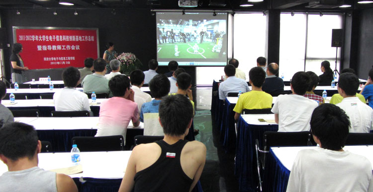 副经理苗夺谦在会上首先致辞,感谢公司对公司科技创新工作的支持,感谢各位指导教师的辛勤指导和同学们的积极努力;创新基地联络人刘永焕,从科技创新氛围营造、员工主体培养和创新能力提高等方面向会议作了年度工作汇报;ACM队员、启迪奖学金获得者、09级计算机科学与技术专业俞丁胜同学也汇报了自己的科技创新经历和心得体会。