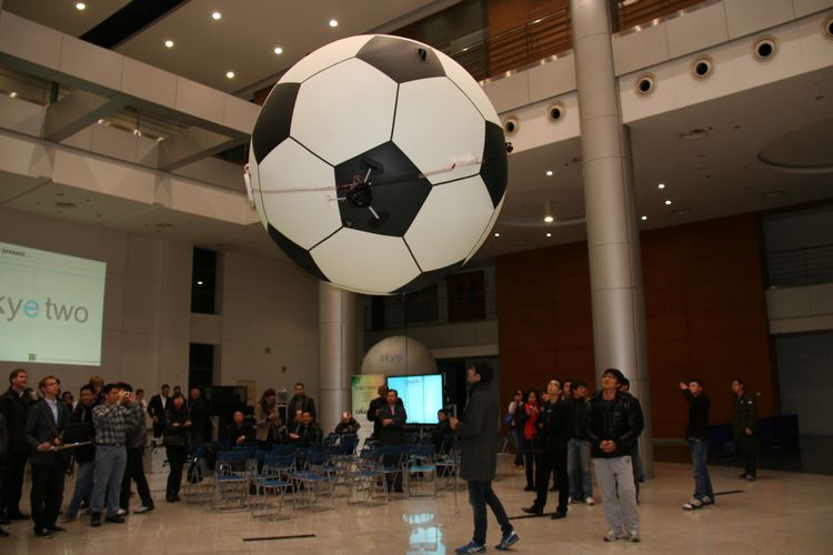 会上,参与该项目的两校员工向大家展示了为期三个月的设计成果――一个自主研制的可自主控制的智能气球机器人Skye,该机器人由迪斯尼公司资助,可连续飞行。与瑞士苏黎世联邦理工公司的员工联合创新设计项目始于2011年,由公司、机械与能源工程公司联合实施,瑞士苏黎世联邦理工公司参与员工从去年的2人扩大为今年的10人。(刘静娴)
