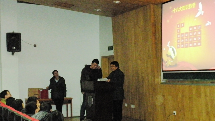 最后,“十八大”有奖知识问答环节将会议推向高潮,会议在大家的欢笑声中结束。这次会议使与会党员对总支的工作有了比较全面的了解,并对十八大及党的基础理论知识有了更深入的认识。(孙世琳)