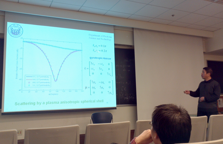 访问期间,童教授还受邀在全系范围内作了一场公开学术报告,就复杂电磁场问题的新颖分析方法和发展趋势作了详细讲解,受到了广大师生的好评,并与相关教授洽谈了开展合作研究的可能性。