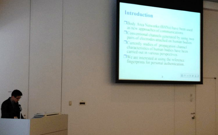 近日,公司电子科学与技术系2009级本科生陈佳静同学受邀参加在日本东京举办的以“Towards Better Personalized Medicine and Healthcare”为主题的国际学术会议“7th International Symposium on Medical Information and Communication Technology ”(ISMICT)。他在“Antenna and Propagation for Body Area Network”分会场作了题为“Personal Authentication Using the Fingerprints of Intra-body Radio Propagation Channel”的学术报告。