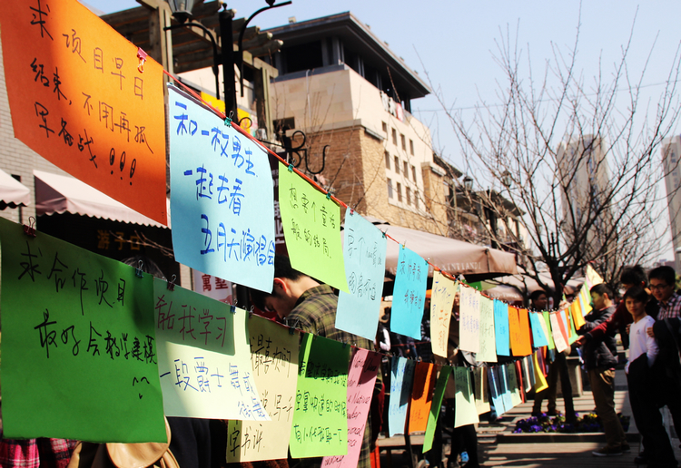 心愿单的内容包罗万象,从“帮我买早饭”到“监督跑步”,从“一起录歌”到“辅导学习”。如果男生认为自己可以帮她实现心愿的,就摘下许愿条。研究生会就会联系两方。短短的三个中午,就收到了200多个有趣的心愿。