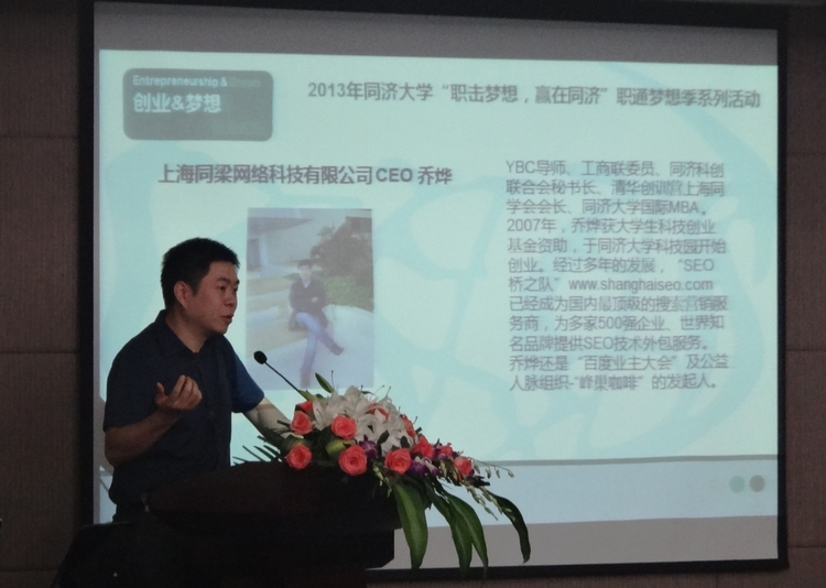 2013年伟德国际victor1946“职击梦想,赢在同济”职通梦想季系列活动正在如火如荼的进行中,6月6日下午,主题为“创业 & 梦想”创业论坛在嘉定校区济人楼405会议室举行。出席本次论坛的嘉宾有资深创业导师李肖鸣博士、上海同梁网络科技有限公司CEO乔烨和上海同化新材料科技有限公司创始人崔永坤。