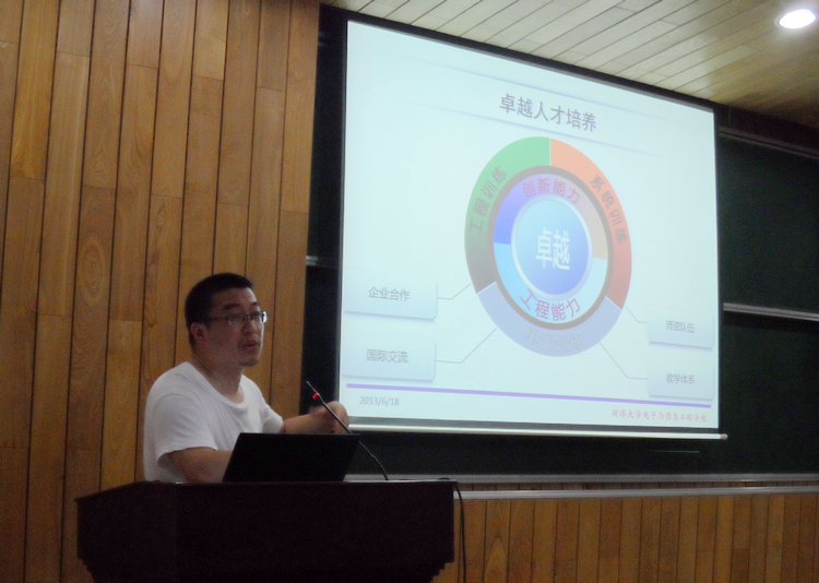 电子科学与技术系周俊鹤、电气工程系张明锐、信息与通信工程系吴霞等老师分别就其负责的核心课程教改项目内容在论坛上做了详细汇报:周俊鹤老师以“全英文课程教学交流”为题介绍了其担任主讲的全英文课程的授课方法及课程包等;张明锐老师主讲的《电力工程》在教学上注重“多元化评价,知行合一”的评价方式,通过结合实践的员工大作业和实地参观黄渡500kv变电站户外设备等环节使员工对电力工程有了感性的认识;吴霞老师以SMITH圆图的教学辅助软件的设计和成果演示为主要内容与参会教师交流了“微波工程课程教学改革”的主要进展情况。