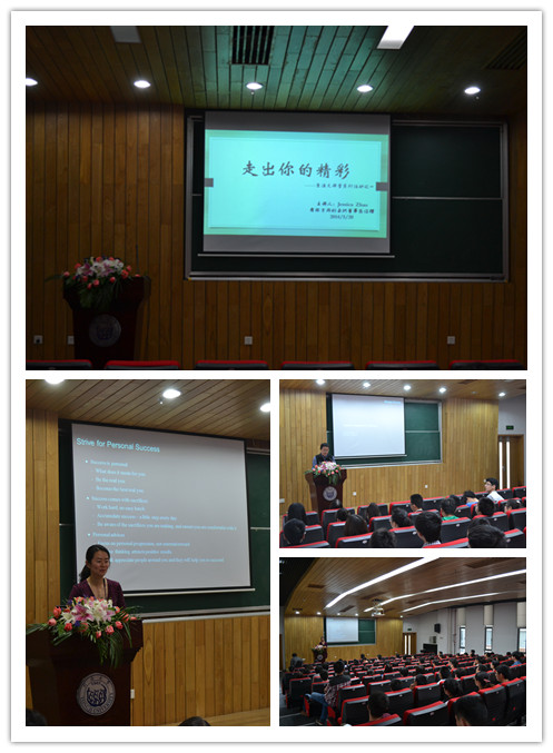 本期生涯教育大讲堂邀请了Morgan Stanley亚洲区董事总经理Jessica Zhao女士与同学们分享了自己从校园到职场的蜕变,从技术研发走向高层管理以及职场核心竞争力的培养等方面的经历。“做有价值的事,不为追求名和利”展示了她在职场上从价值观角度去思考人生;“正面的心态给予人正面的能量”,她从思维角度阐述自己对于生活的感悟;“完成每天的目标,不断战胜自我”向同学们讲述了如何在个人成长和发展上不断实现超越。