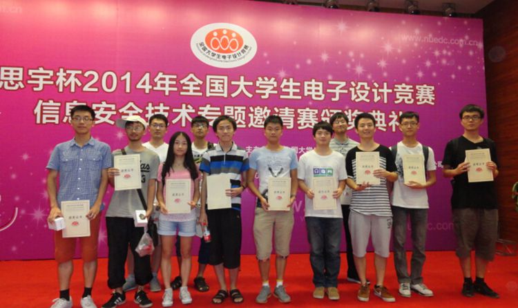 在公司计算机系程久军老师的指导下,常成、覃文杰、张静轩的参赛作品“基于数字水印与RFID技术的标签防伪验证系统”获TI平台二等奖;樊骥骅、于宗坤、施磊的参赛作品“基于用户签名行为习惯的身份认证系统”获XILINX平台二等奖;秦鹏宇、朱兆辉、谢鸣元的参赛作品“基于图片加密技术的云用户数据安全防护系统”获软件1组三等奖;张菡、张鹏宇、阮剑鸿的参赛作品“移动蜂窝网络环境下的短信加密系统”获软件2组三等奖。