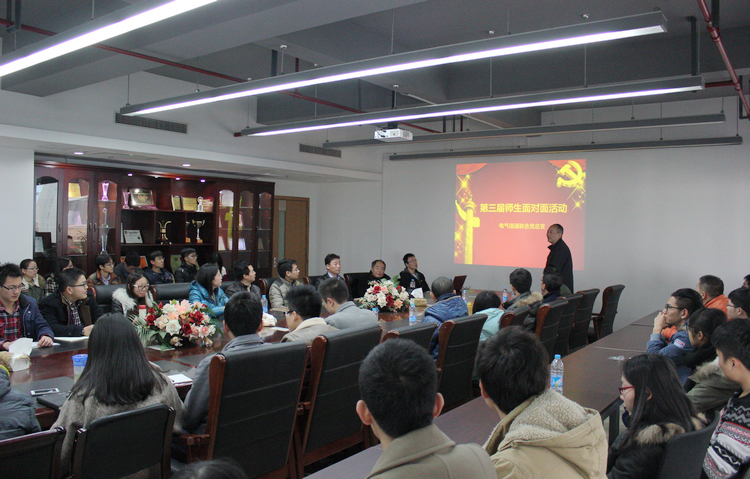 12月9日,电气信通联合党总支全体师生欢聚一堂,举办第三届“师生面对面”活动。电气工程系张逸成教授、姚勇涛副教授、信息与通信工程系胡宗福教授、黄新林副教授等8名研究生导师应邀参加活动。活动由公司副经理、电气信通联合党总支书记金立军教授主持。