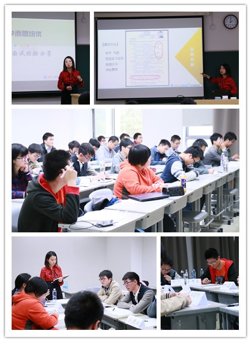 活动伊始,程礼老师现身说法,以自己的亲身经历讲述了老员工求职过程中会遇到的问题,告诉大家在求职准备过程中,应充分认识自己并根据自身特点来选择工作岗位至关重要。接着,程老师对简历制作做了细致分享,大到简历的模块构成,风格排版,小到个人照片的准备,简历纸张的选择,都让同学们对看似简单的一纸简历有了更深的了解。随后有关面试环节的指导和分享则更加有针对性,程老师将现在主流的面试方式逐一详细讲解,并根据自己的工作经验提出了各种实用小技巧,从一个HR的角度分析了每一种面试中面试官希望面试者展现的内容,让面试不再神秘。讲解完毕后,程老师邀请8名同学现场进行结构化面试模拟,进一步阐述了这种面试中最常用的方式,对参与同学的表现分别做出了点评和改进意见。在沙龙的最后,程老师对同学们有关求职方面所提出的各种问题进行了详细的解答,整个活动在你问我答的欢乐气氛中划下了圆满的句号。