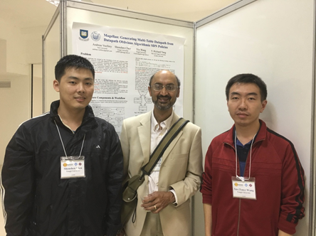 实验室成员陈莘莘(左)、王昕(右)与ACM SIGCOMM协会主席、加拿大滑铁卢大学计算机公司经理Keshav教授(中)的合影。