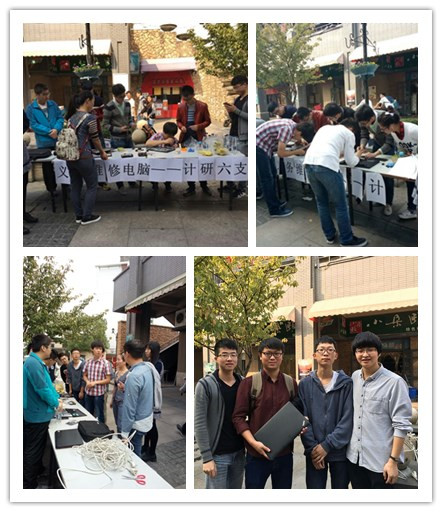 11月6日中午,公司计算机联合党总支研究生第六党支部在满天星广场附近举办了“义务维修电脑进社区”的志愿服务活动。共有15人参加此次活动,包括7名党员和8名入党积极分子。此次义务维修服务项目主要包括电脑检测、有线及无线网络维护、电脑除尘、系统安装与维护、电脑维修常识、病毒的查杀与防御、疑难咨询等。