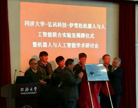3月3日下午2时,公司与弘讯科技、伊雪松机器人公司关于“机器人与人工智能联合实验室”揭牌仪式暨机器人与人工智能学术研讨会在公司逸夫楼二楼报告厅举行。公司常务副董事长伍江教授、弘讯科技董事长熊钰麟先生、科技部高技术研究发展中心刘进长研究员、哈尔滨工业大学赵杰教授、山东大学李贻斌教授、公司科研院副经理何斌教授、公司经理、联合实验室主任陈启军教授以及部分师生参加了此次揭牌仪式和学术研讨活动。