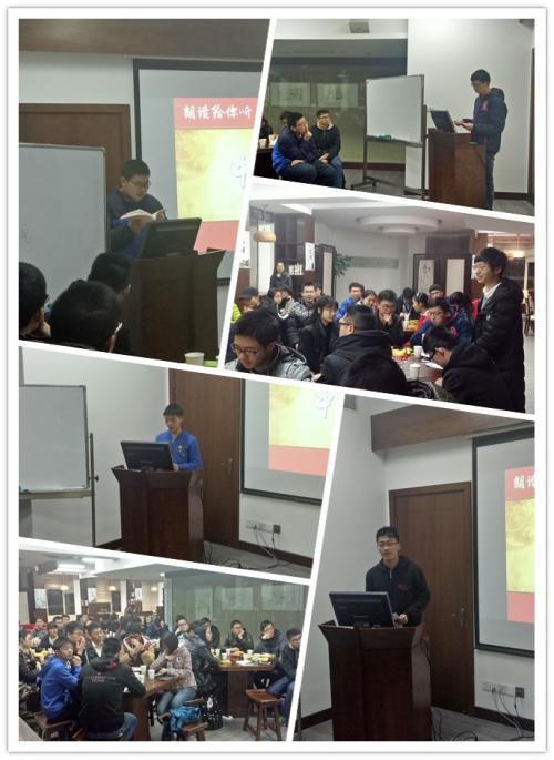 本次读书分享会采用朗读+分享的方式进行,同学们围绕“我认识的中国”选取经典著作,大声朗读,分享感受。分享会由赵云同学主持,王元龙、黄浩、常焱颢、张少凡、肖云鹏分别挑选出自己感触最深的著作的段落进行朗读,然后与听众分享读书心得体会,有对中国农民问题的思考,关注农民,关注社会问题,深刻地体悟到中国农民固有的弱点,更看到了农民的善良、勤劳、孝顺、敢于担当的优良品质,更可贵的是能以一颗悲悯之心,指明了解决问题的方向;有对人生的认识,认识到生活需要奋斗、进取与挑战,不能等待别人来安排,要自己去争取,认识到人生应有信仰和追求,面对不公平的命运,只要不屈不挠、艰苦奋斗、勇往直前,终能获得成功;也有对中国政治制度的关注,了解到中国政治的发展进步,洞察到就现如今中国的政治条件来说,人民代表大会制度符合中国国情,人民代表大会制度使得我国政治更加民主、透明,甚至比外国的人人参与选举的民主制度显得更加合理高效。......整个读书分享会穿插读者与听众互动的环节,同学们都踊跃举手发言,各抒己见,与读者交换了自己独特的见解,活动过程进行得非常顺利。