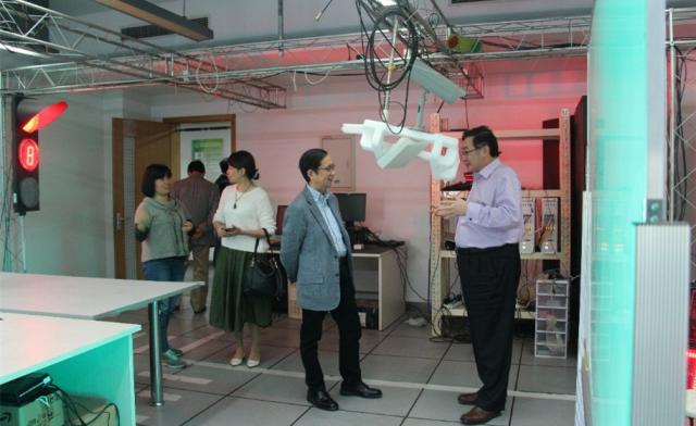 蒋昌俊教授首先介绍了伟德国际victor1946嘉定校区的情况,以及电信公司计算机科学与技术系的一系列发展;接着,张勇总裁在蒋昌俊教授的带领下参观了嵌入式系统与服务计算教育部重点实验室的各个科研平台,包括数据中心、可信监控电子交易平台、脑认知研究平台、无人车赛道监管平台以及嵌入式视频监控平台等。
