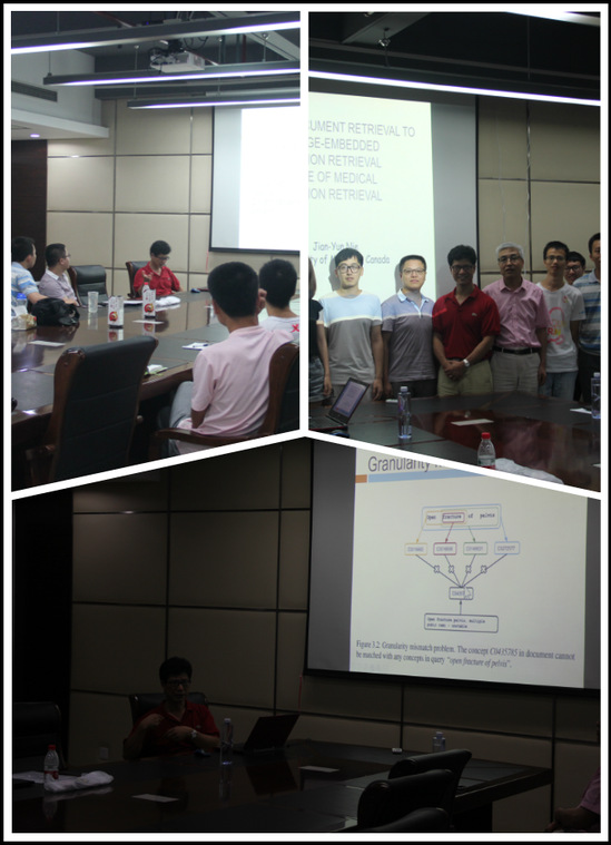 7月14日,应公司苗夺谦教授邀请,信息检索领域国际著名学者、加拿大蒙特利尔大学聂建云教授在智信馆305会议室作了题为“From document retrieval to knowledge-embedded information retrieval – the case of medical information retrieval”的学术报告,这也是计算机科学与技术系智信讲坛第107期内容。